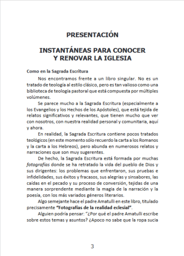 Se trata de una lectura imprescindible para conocer la realidad eclesial de una manera a la que no estamos acostumbrados, pues el estilo de los documentos eclesiales es totalmente distinto, generalmente exhortativo.